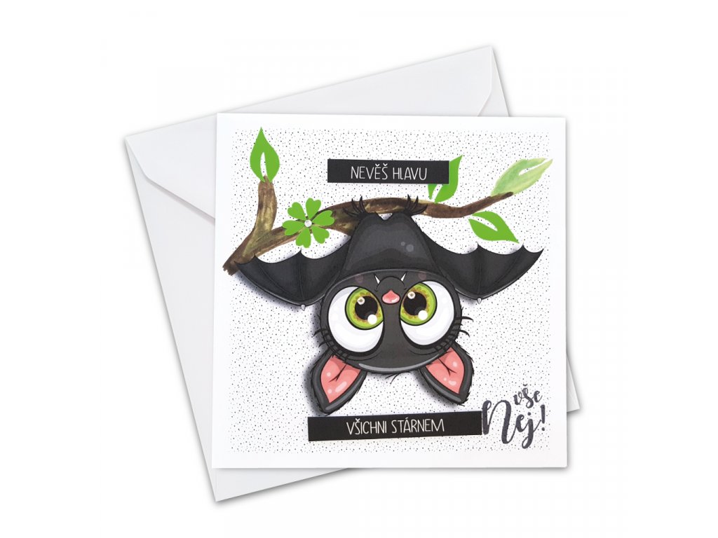 Legrační přání s netopýrem k narozeninám, svátku z naší dílny Afifi. Přání vyrábíme a navrhujeme sami.