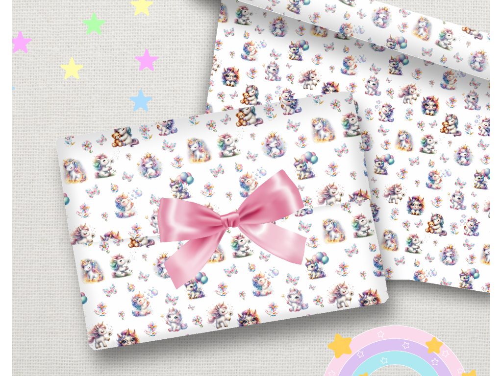 Balicí papír - Jednorožci barevní arch 70x100cm
