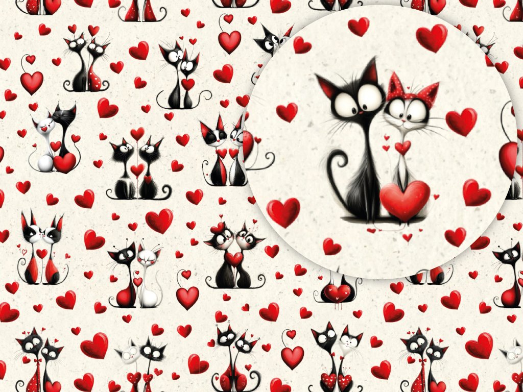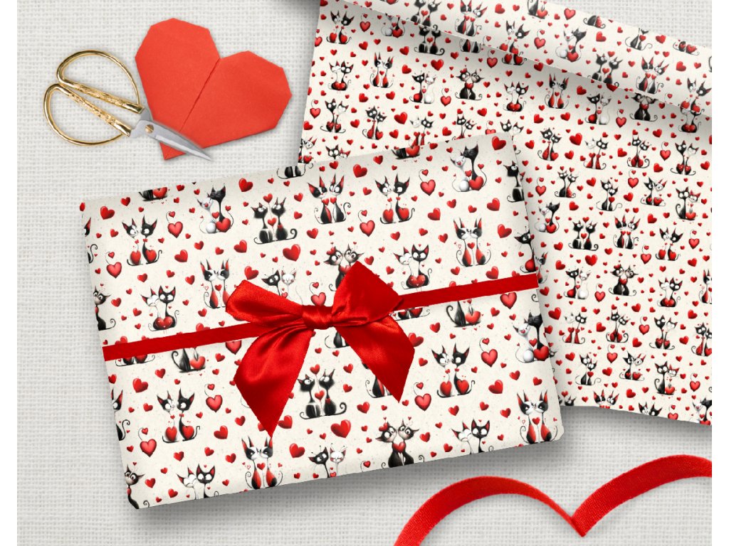 Balicí papír - Valentýnské kočičky arch 70x100cm