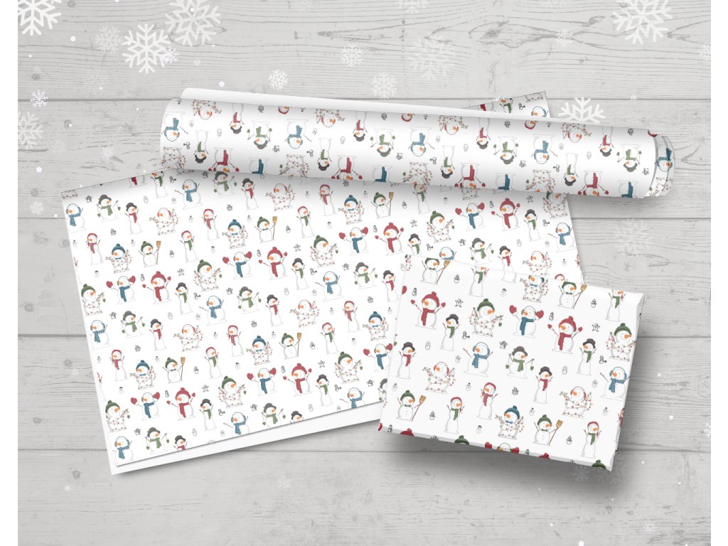 Balicí papír - vánoční sněhuláci arch 70x100cm