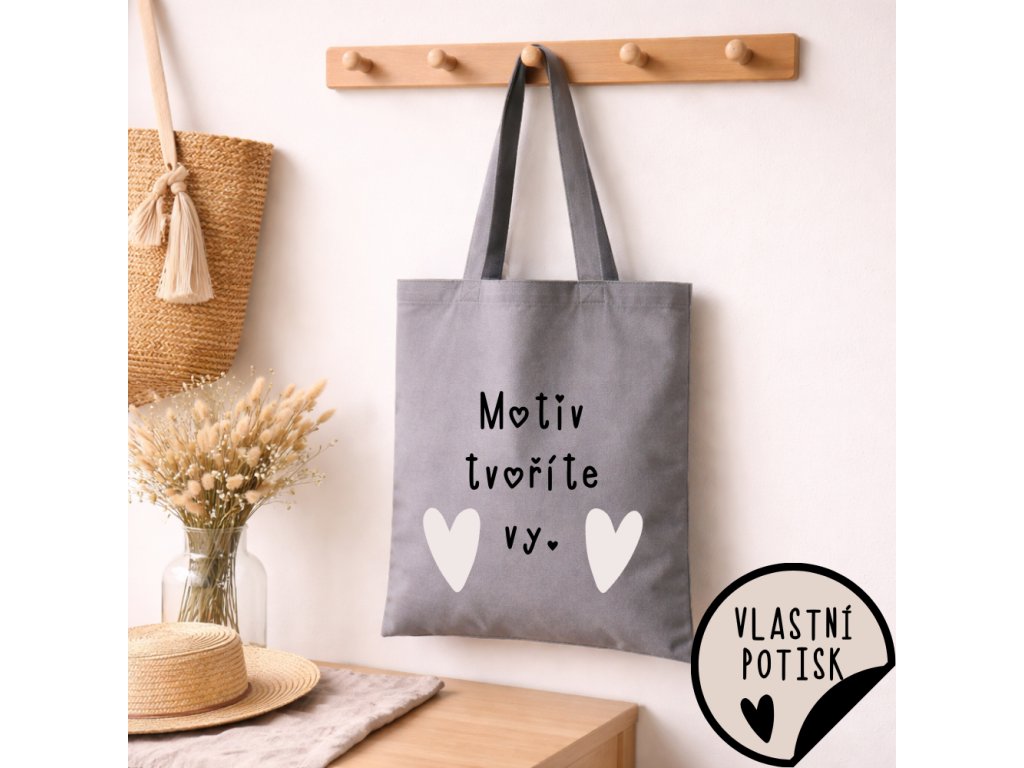Bavlněná taška šedá s vlastním potiskem - vlastní text, obrázek nebo logo rozměr 36x41 cm | na rameno