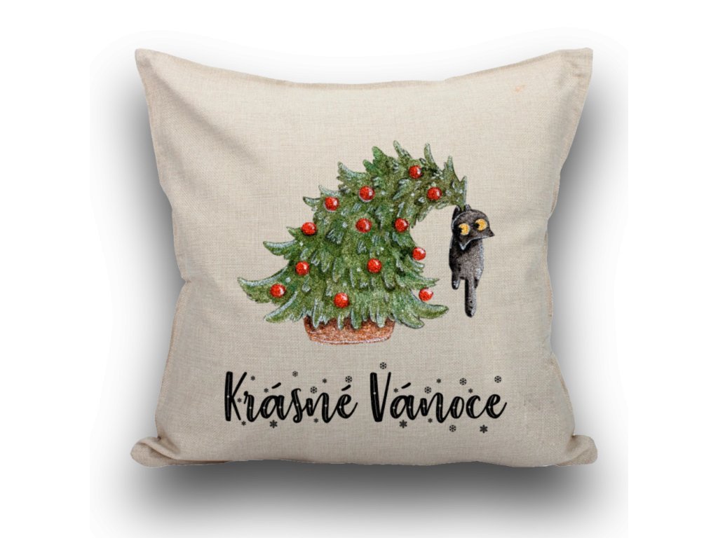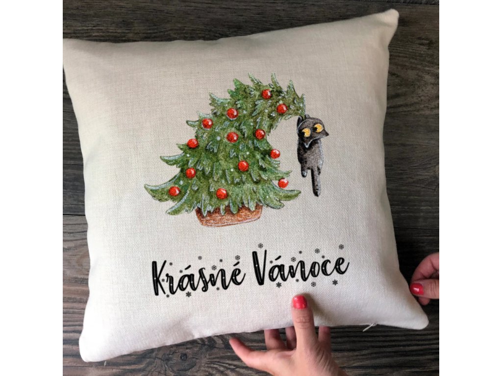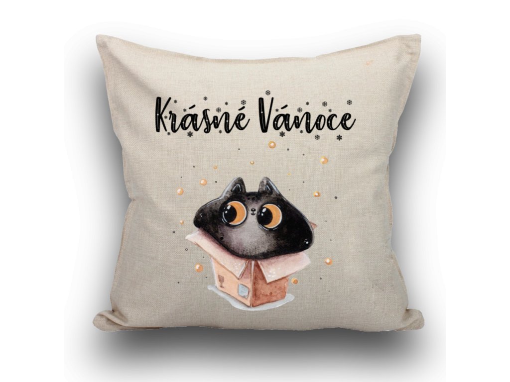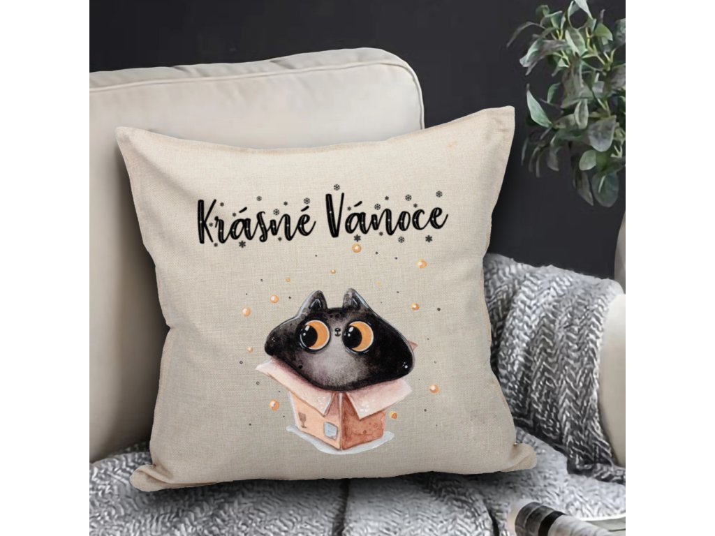 Dekorační povlak na polštář s vánočními kočičkami. Z každé strany najdete jiný obrázek, aby vaše posezení mohlo projít rychlou změnou.