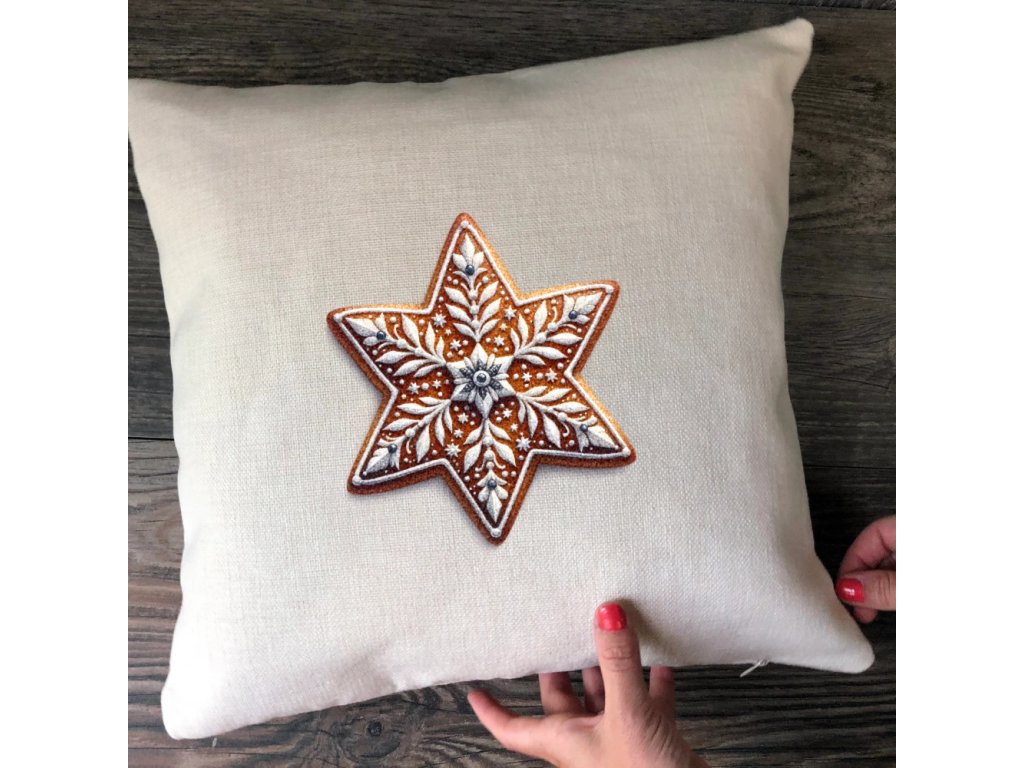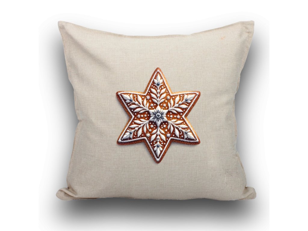 Dekorační povlak na polštář s motivy vánočních perníčků. Z každé strany najdete jiný obrázek, aby vaše posezení mohlo projít rychlou změnou.