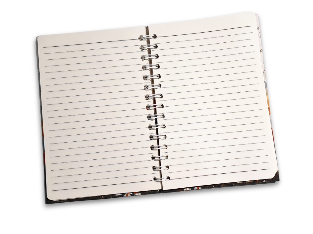 Kroužková vazba umožňuje pohodlné otáčení stránek a snadné psaní. Sešit lze jednoduše otevřít naplocho, takže se v něm dobře píše i kreslí. Linkovaný vnitřek je ideální pro přehledné psaní poznámek, zápisků nebo úkolů.