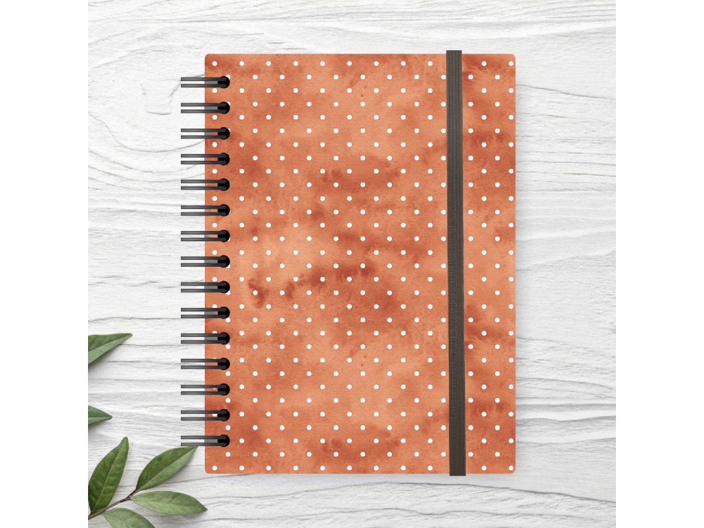 Kroužkový sešit A5 linkovaný – oranžový s puntíky pevné desky | gumička | recyklovaný papír | 80 stran