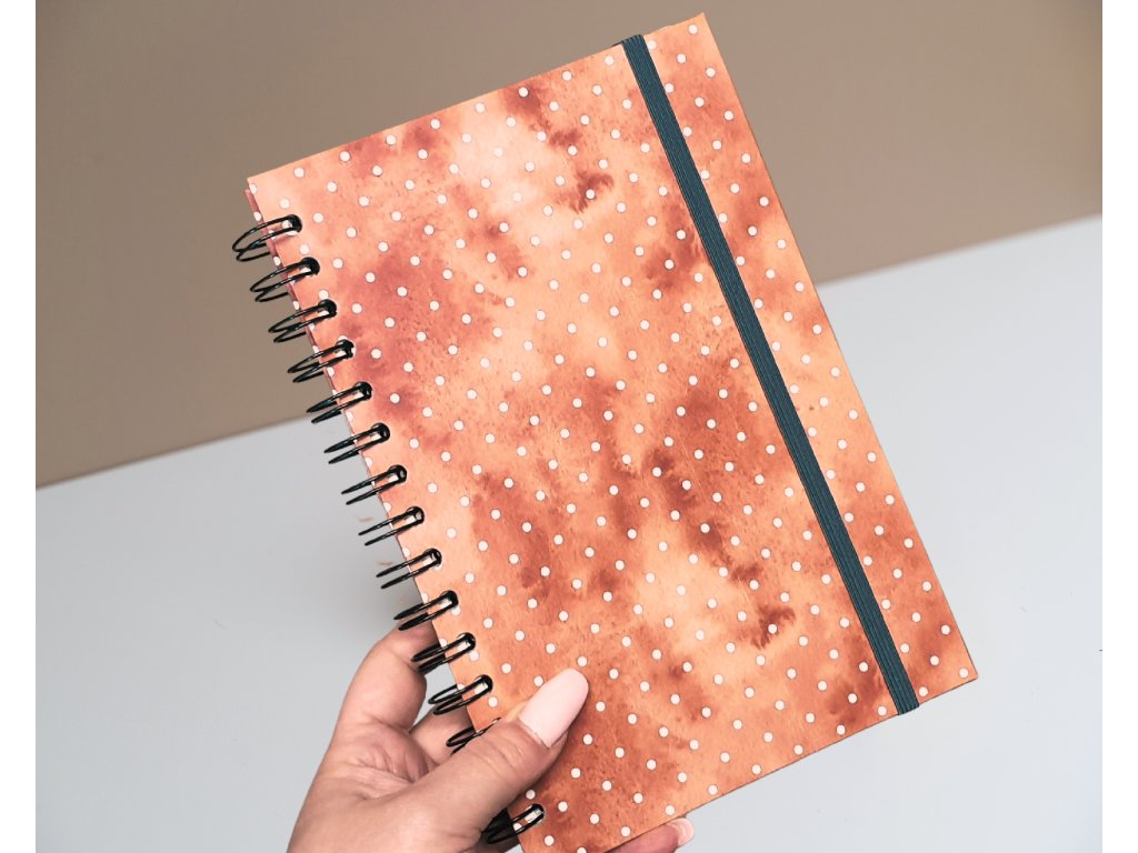 Kroužkový sešit A5 - pevné desky - Terakotové puntíky