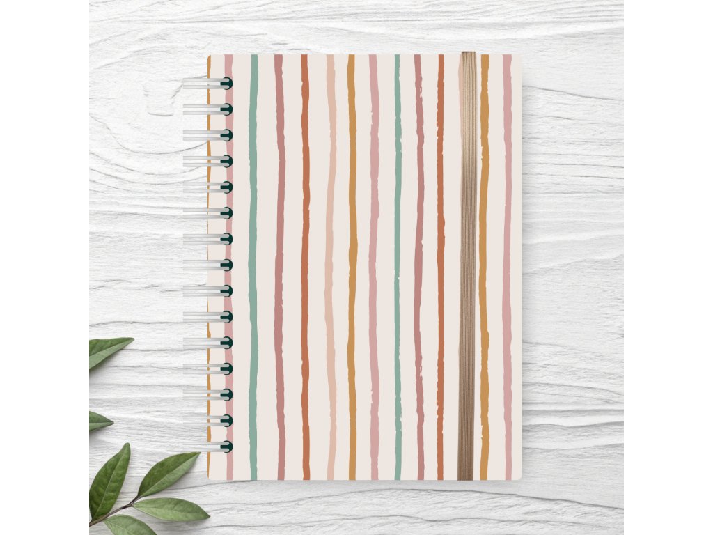 Elegantní sešit s matnou sametovou laminací s motivem pruhů, který můžete mít vždy po ruce.