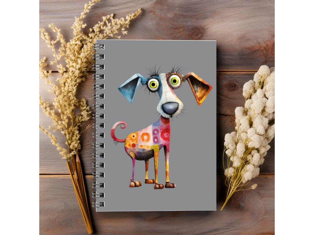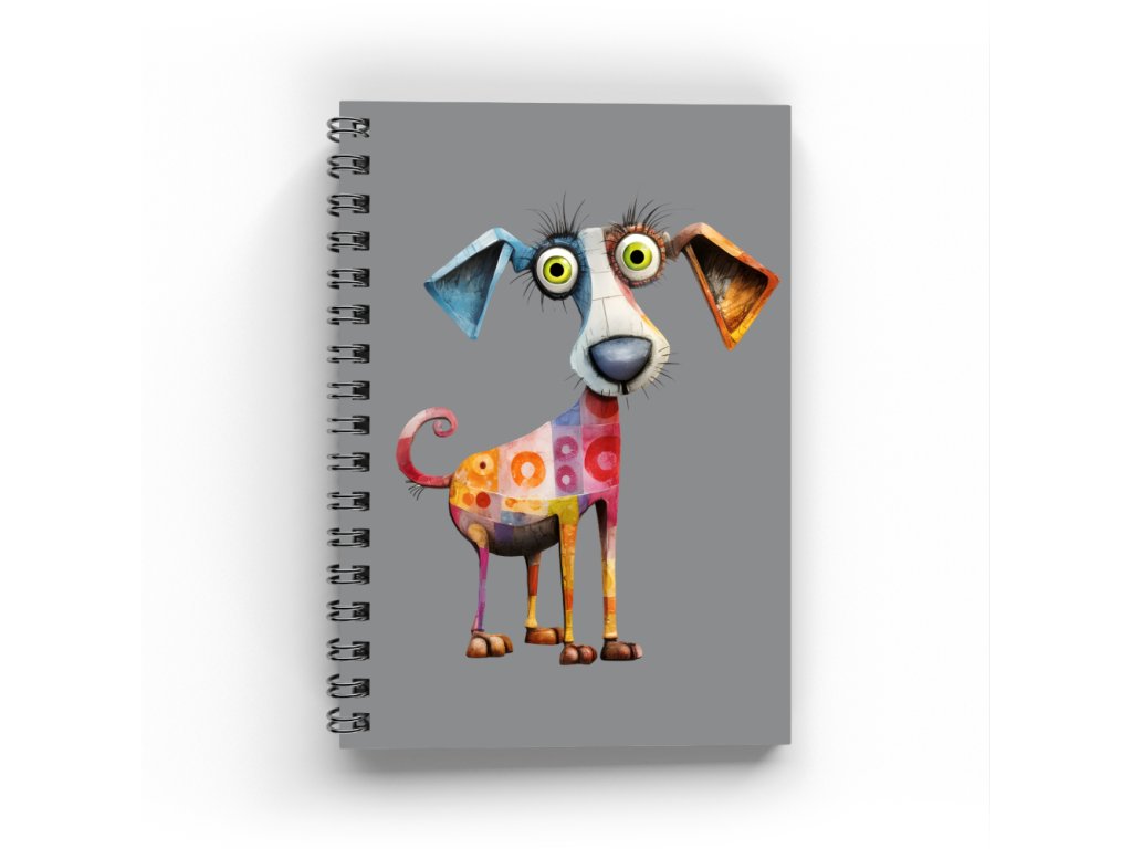 Kroužkový sešit A5 tečkovaný - barevný pejsek laminované desky | 80g papír | 50 stran