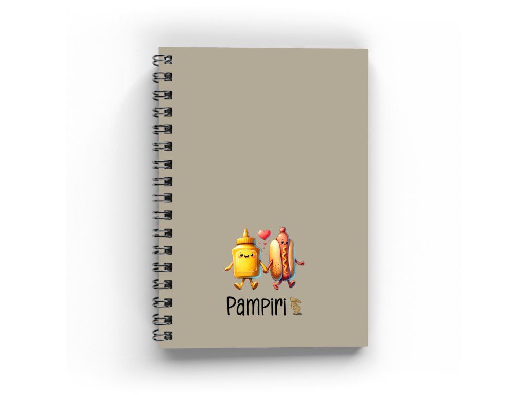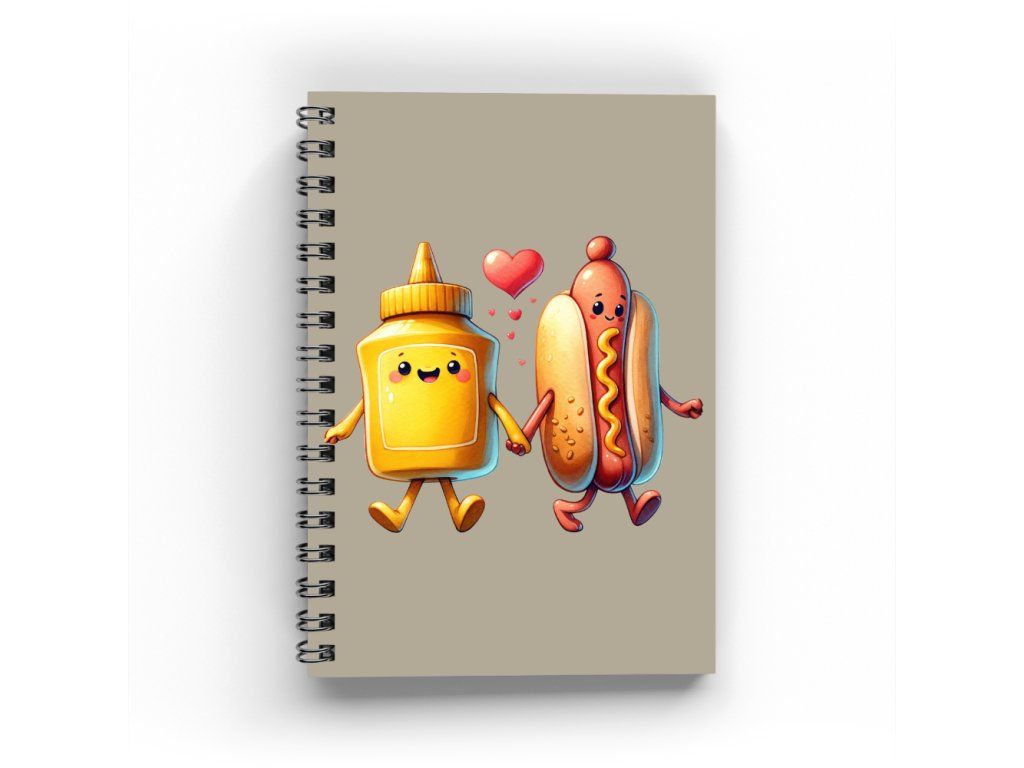 Laminované desky chrání sešit před opotřebením a zároveň dodávají elegantní vzhled. Povrch je odolný a snadno se udržuje, takže sešit vydrží každodenní používání. Veselý motiv páru hotdog s hořčicí.