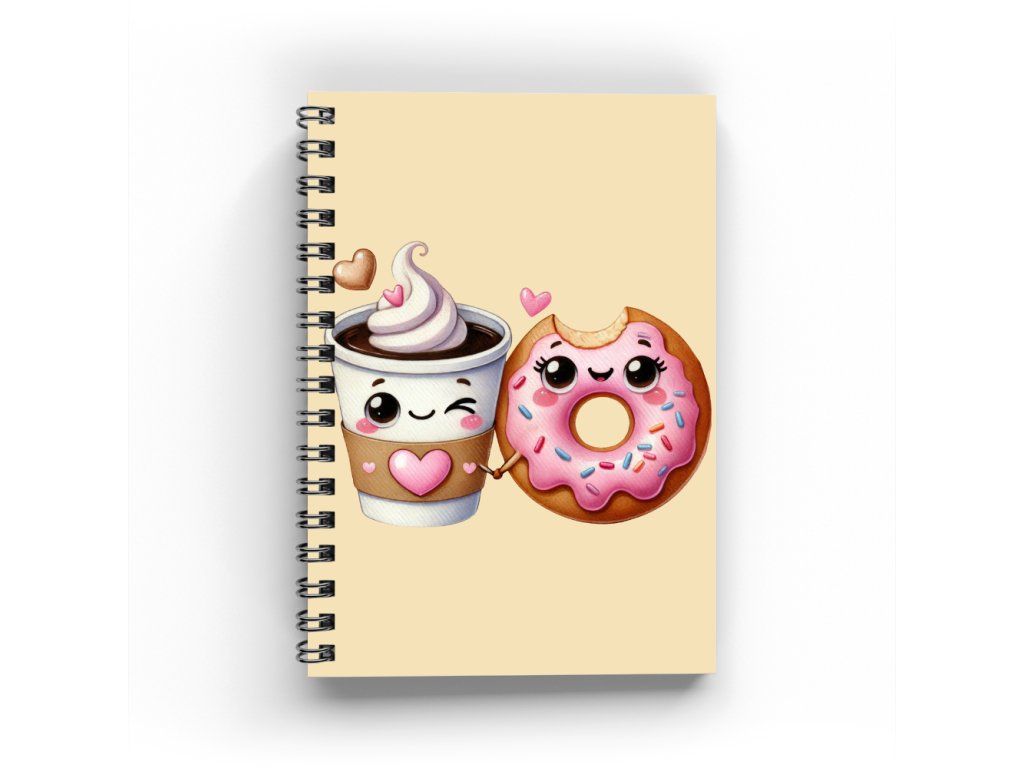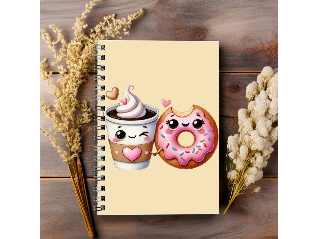 Laminované desky chrání sešit před opotřebením a zároveň dodávají elegantní vzhled. Povrch je odolný a snadno se udržuje, takže sešit vydrží každodenní používání. Veselý motiv kafe s donutem.