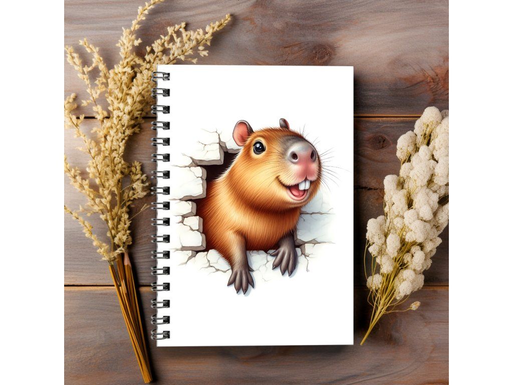 Kroužkový sešit A5 tečkovaný - kapybara ve zdi laminované desky | 80g papír | 50 stran