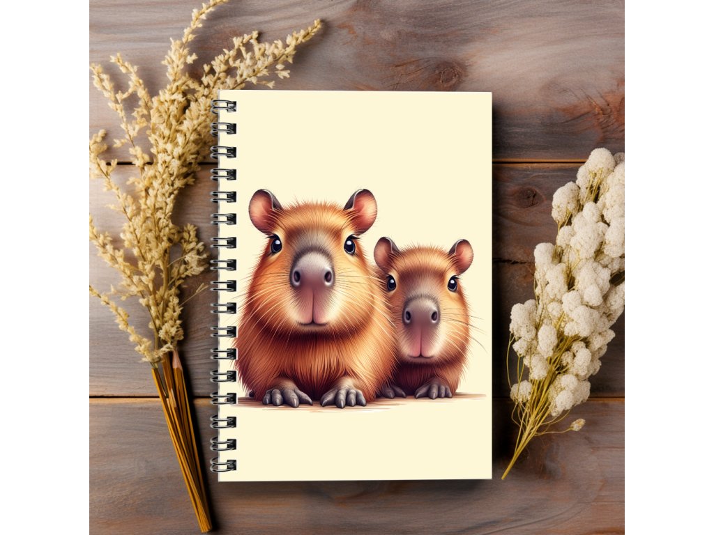 Kroužkový sešit A5 tečkovaný - kapybary laminované desky | 80g papír | 50 stran