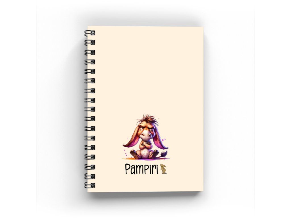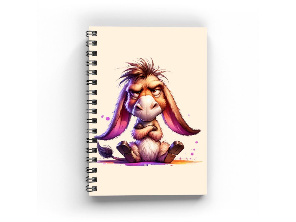 Kroužkový sešit A5 tečkovaný - zamračený oslík laminované desky | 80g papír | 50 stran