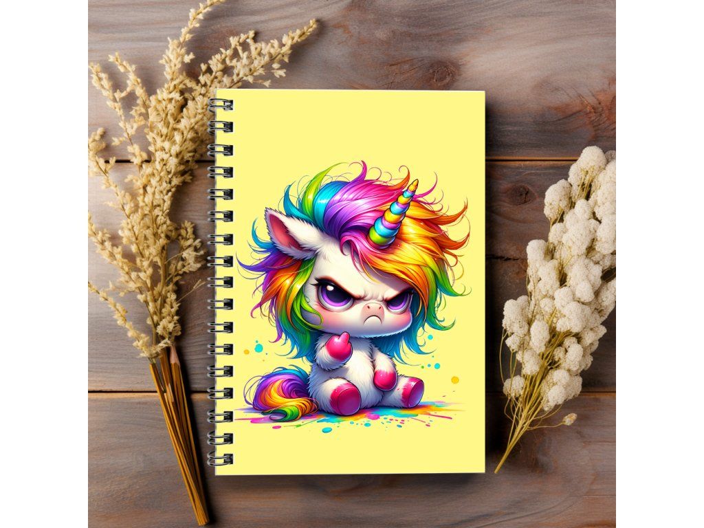 Kroužkový sešit A5 tečkovaný - zamračený unicorn 2 laminované desky | 80g papír | 50 stran