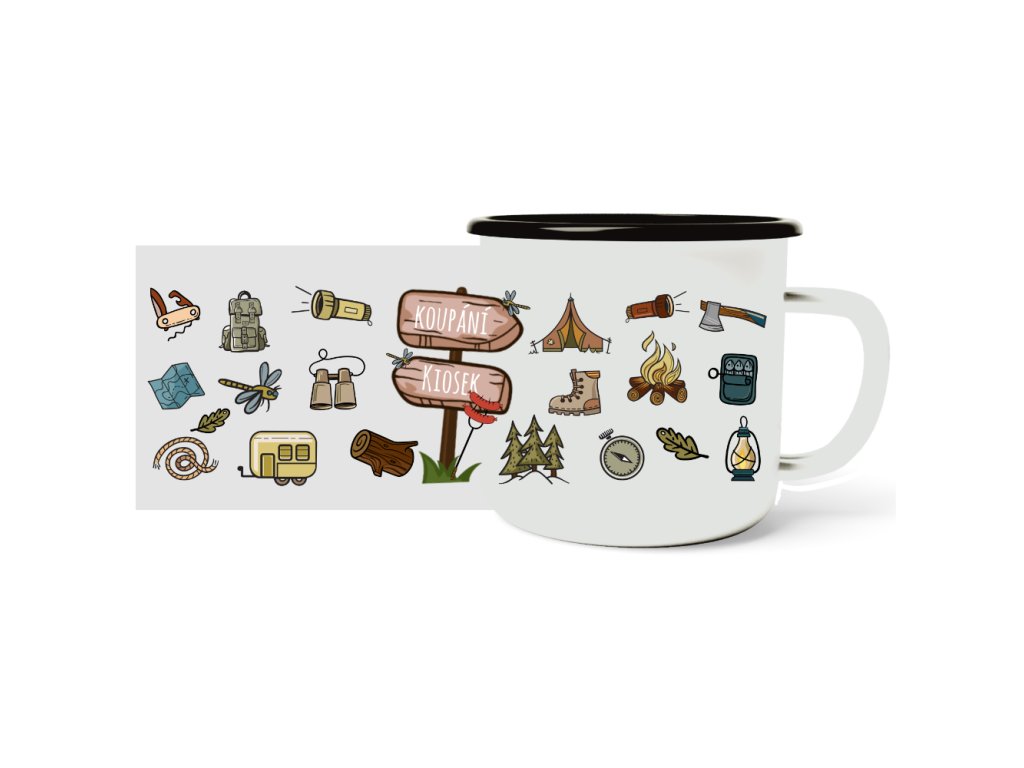 Plecháček s potiskem kempování pro muže, kluky je lehký, odolný a ideální na cesty, výlety i každodenní použití. Skvěle se hodí na kávu, čaj i jiné nápoje doma i venku.