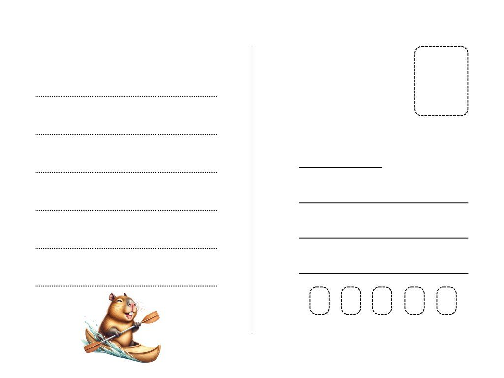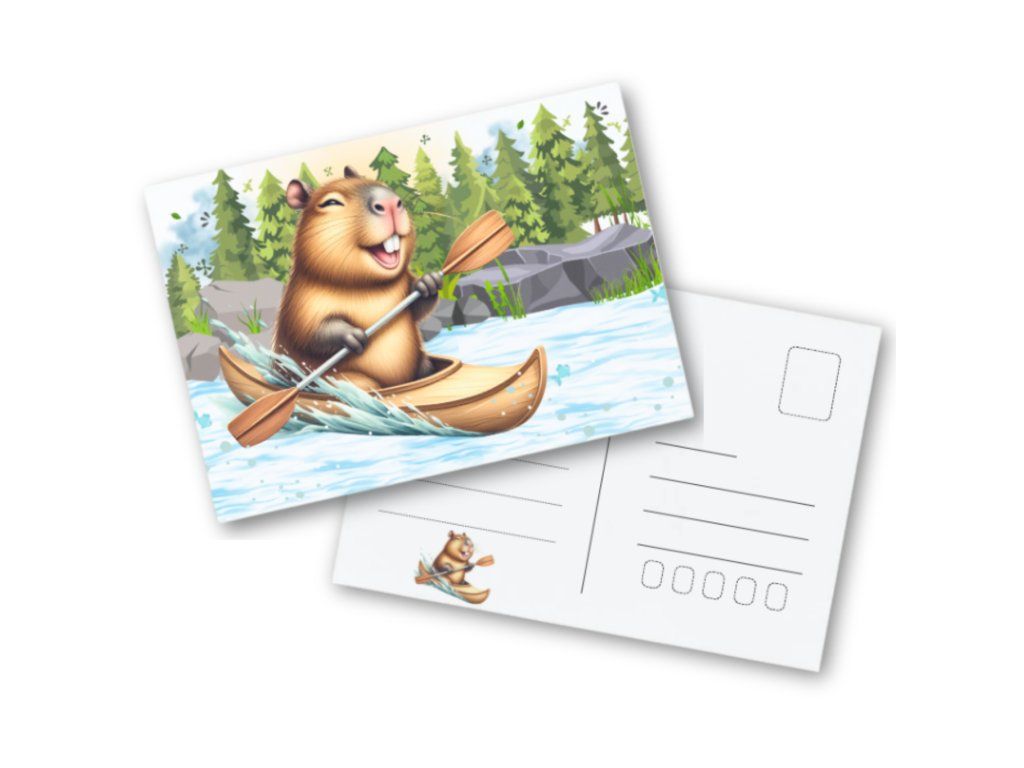 Pohlednice - kapybara na kánoi vyrobeno v Afifi