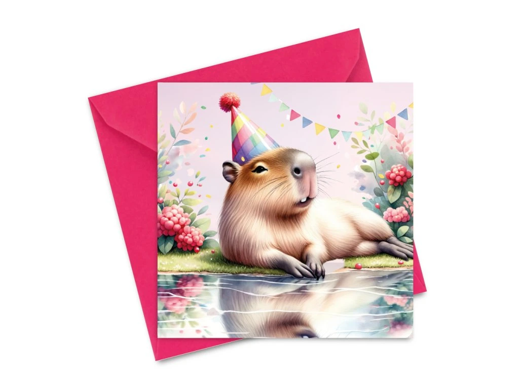 Přání - kapybara slaví čtverec | narozeniny | svátek