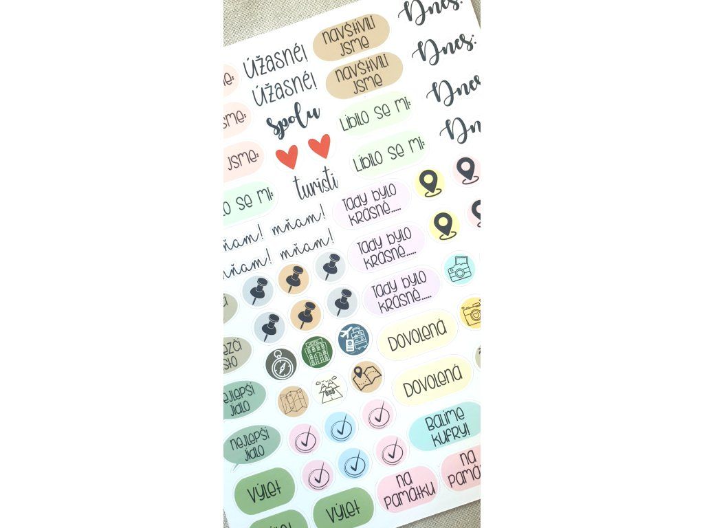 Samolepky můžete využít na zaznamenání zážitků, označení míst nebo jen jako dekoraci, která dodá vašim zápiskům osobitý styl.
