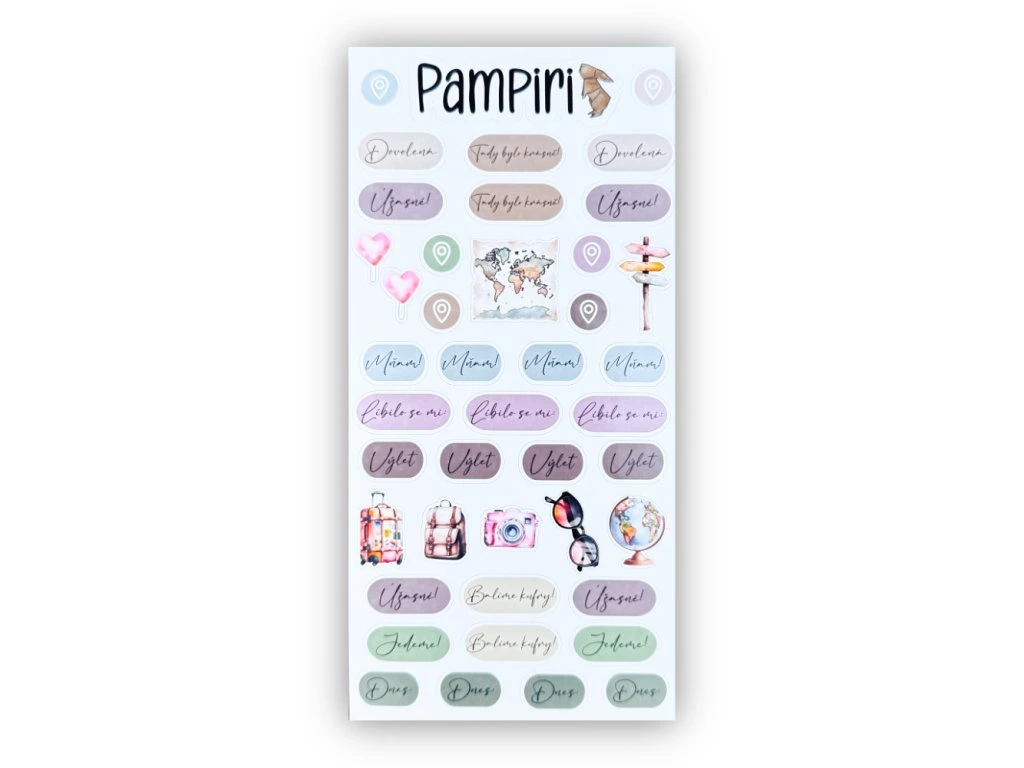 Samolepky můžete využít na zaznamenání zážitků, označení míst nebo jen jako dekoraci, která dodá vašim zápiskům osobitý styl.