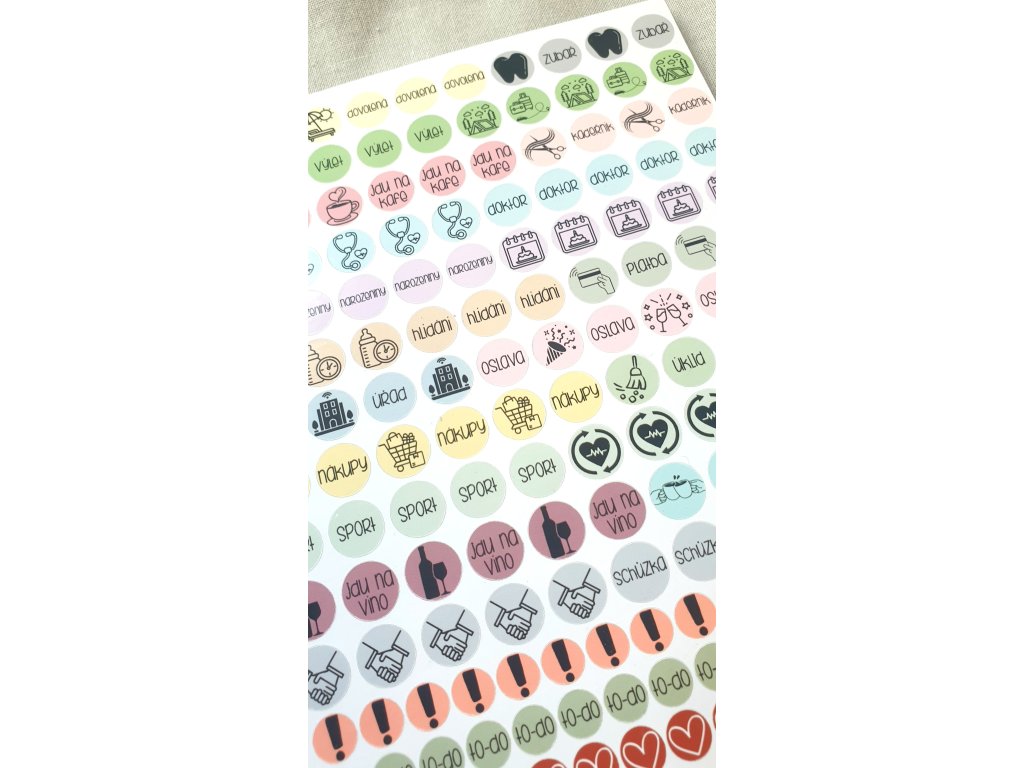 Vyrábíme je sami v našem studiu v Praze a proto vám rádi vytvoříme i arch na míru – přesně s ikonami, které zapadnou do vašeho každodenního plánování.