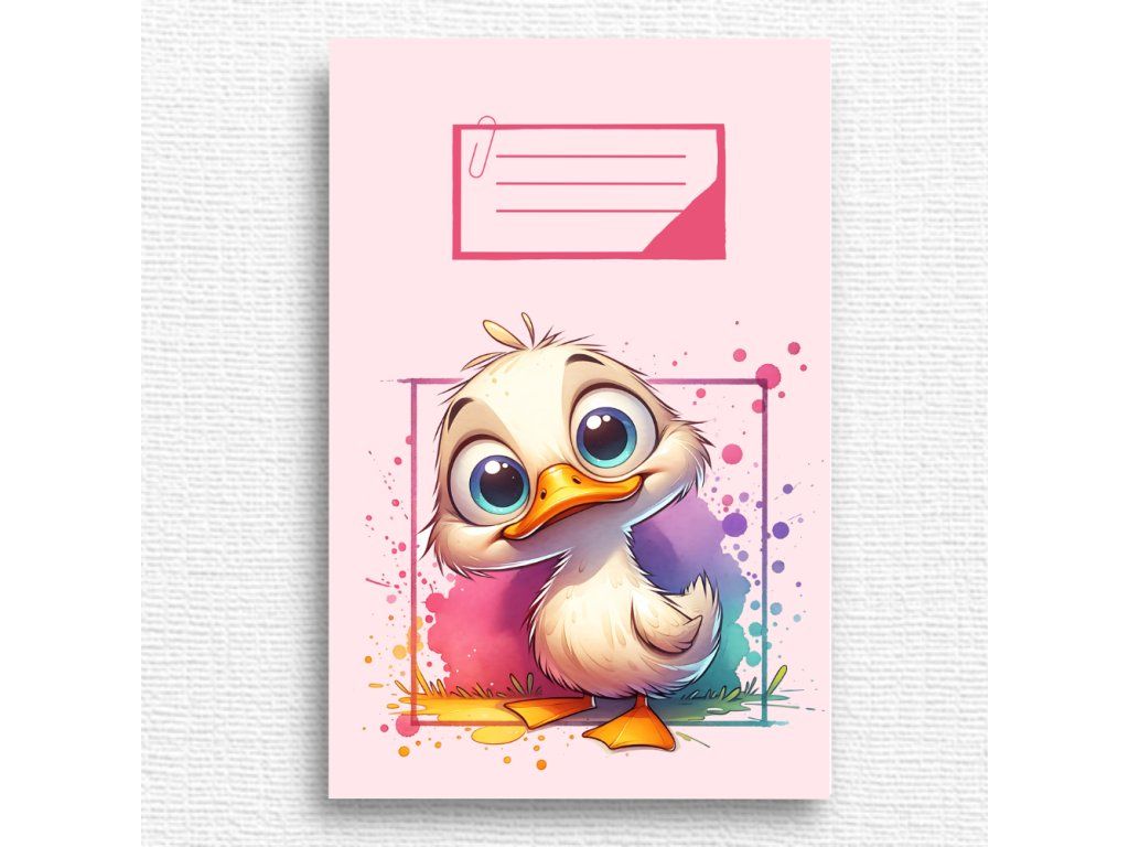 Roztomilý školní sešit s motivem kačenky, potěší všechny děti, které mají rády zvířátka a hravé ilustrace.