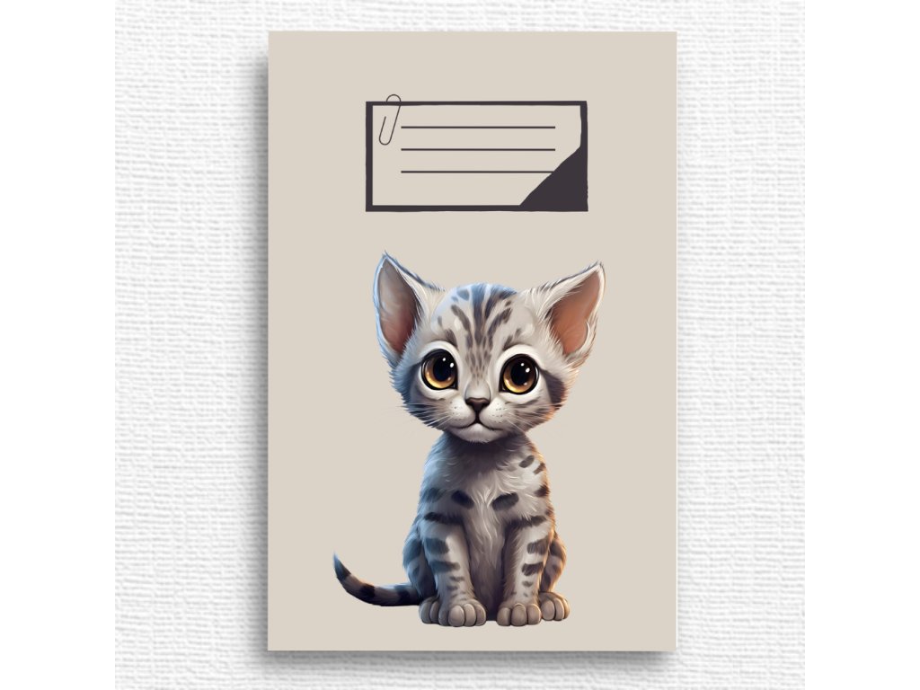 Roztomilý školní sešit s motivem kočičky, potěší všechny děti, které mají rády zvířátka a hravé ilustrace.