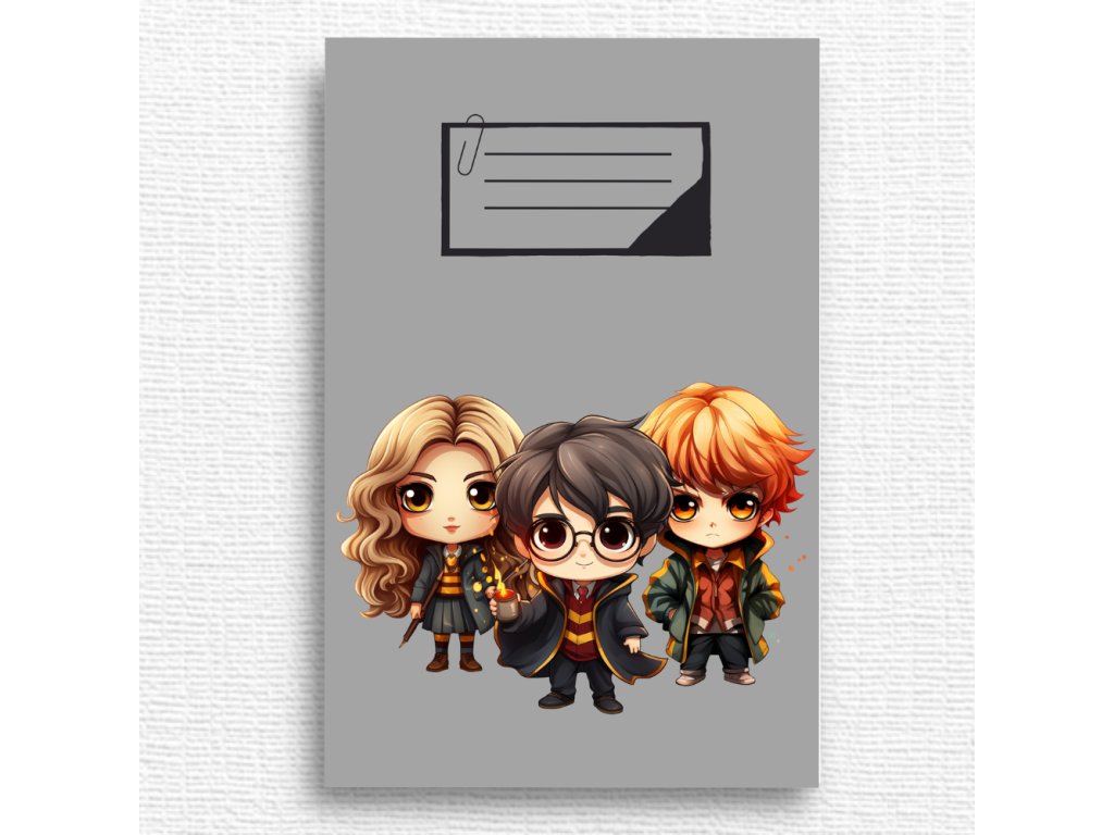 Roztomilý školní sešit s motivem kouzelníků, potěší všechny děti, které mají rády kouzla, kouzelnické filmy a hravé ilustrace.