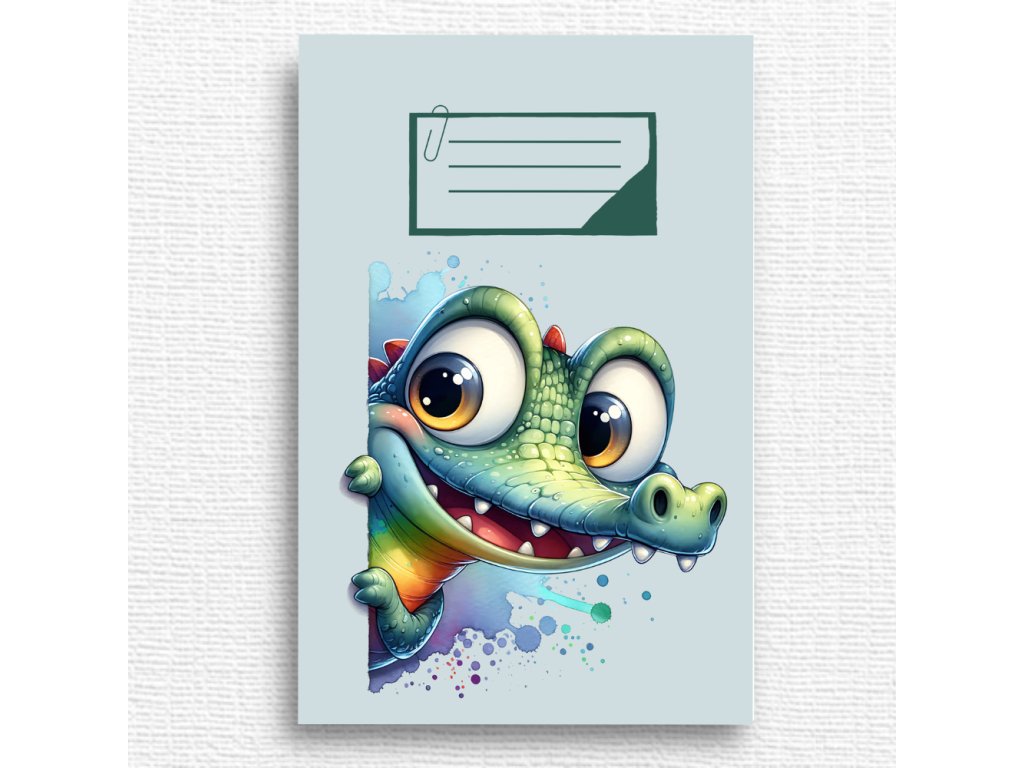 Roztomilý školní sešit s motivem krokodýla, potěší všechny děti, které mají rády zvířátka a hravé ilustrace.