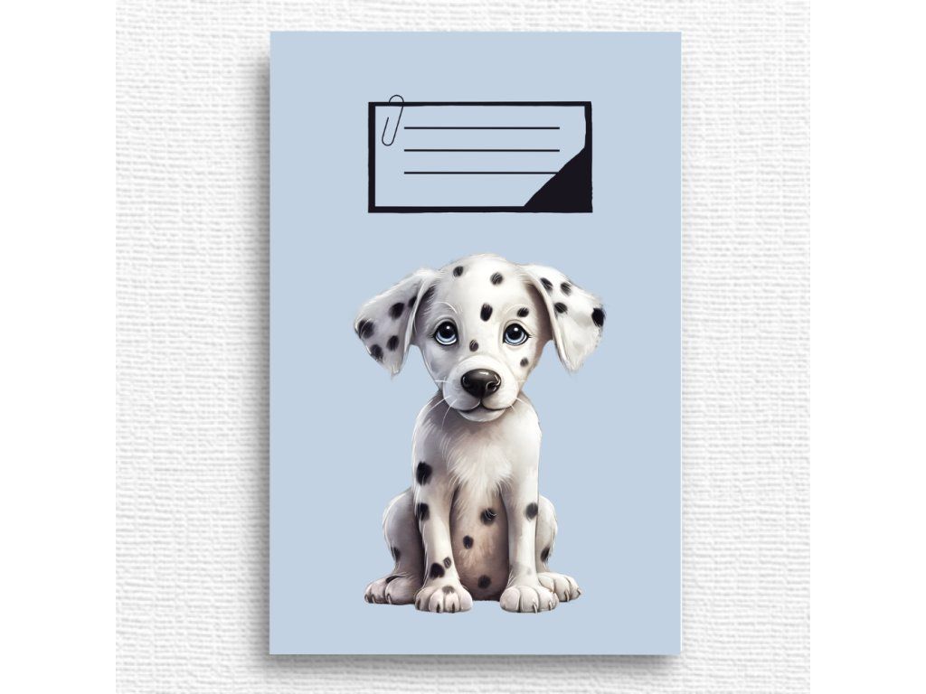 Roztomilý školní sešit s motivem pejska, rasa dalmatin, potěší všechny děti, které mají rády zvířátka a hravé ilustrace.