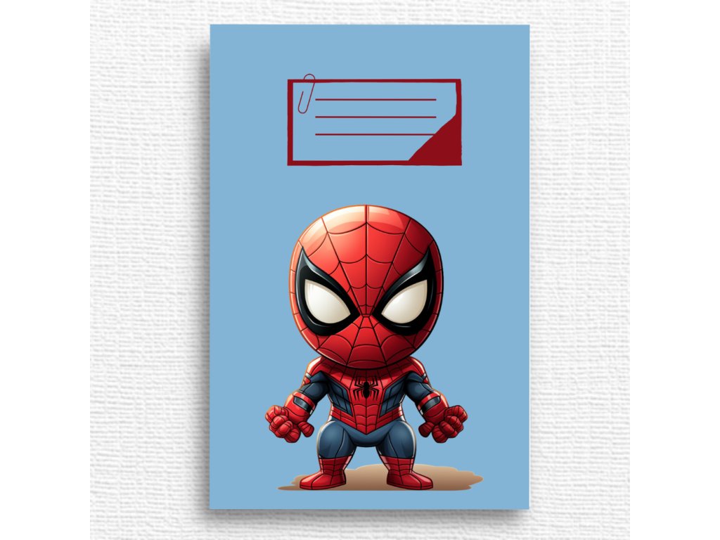 Roztomilý školní sešit s motivem slavného pavoučího superhrdiny, potěší všechny děti, které mají rády hravé ilustrace.