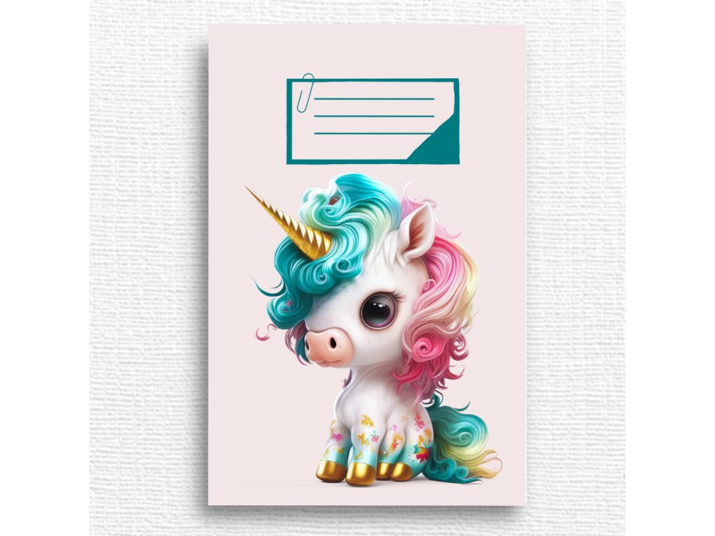 Roztomilý školní sešit s motivem jednorožcem, potěší všechny děti, které mají rády zvířátka a hravé ilustrace.