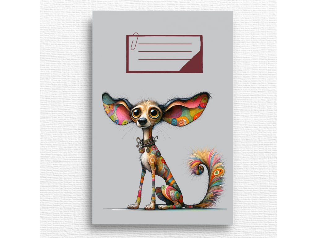 Roztomilý školní sešit s motivem ušatého pejska, potěší všechny děti, které mají rády zvířátka a hravé ilustrace.