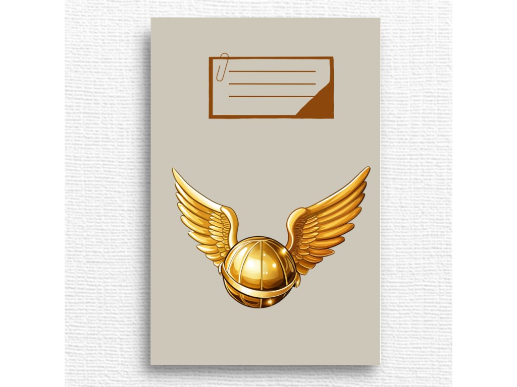 Roztomilý školní sešit s motivem zlatonky, potěší všechny děti, které mají rády kouzelnický svět a hravé ilustrace.