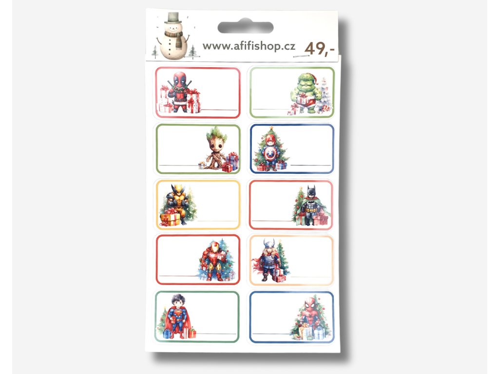 10 ks samolepících jmenovek na dárek s vánočními motivy.