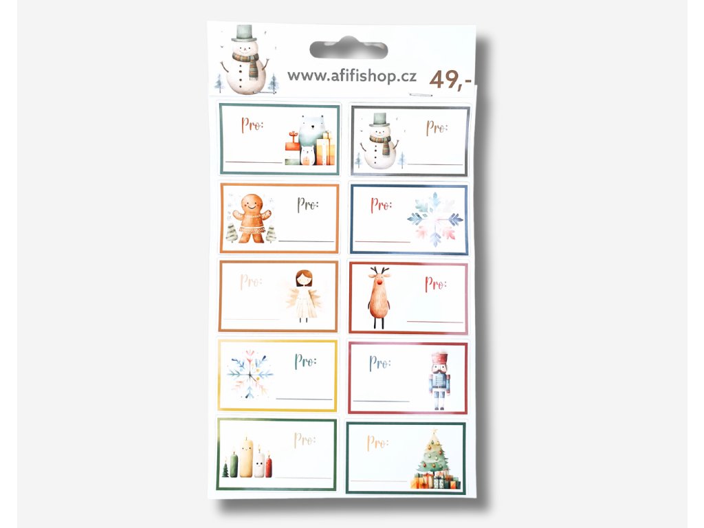 10 ks samolepících jmenovek na dárek s vánočními motivy.