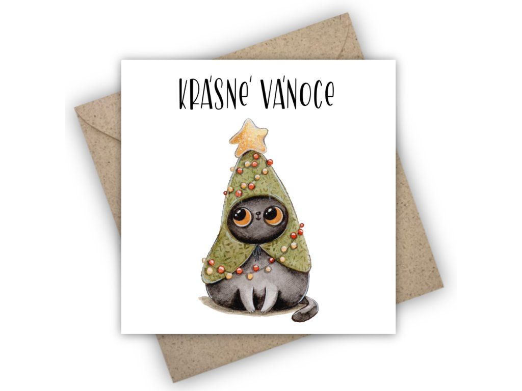 Vánoční přání - kočička vánoční stromek Vánoce